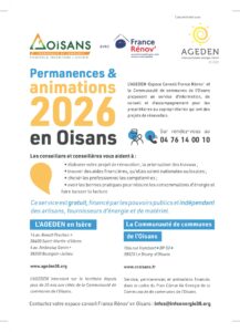 En partenariat avec la Communauté de communes de l’Oisans, l’AGEDEN-Espace Conseil France Rénov’, propose un service d’information, de conseil et d’accompagnement pour les propriétaires ou copropriétaires qui ont des projets de rénovation.