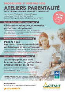 Pour tout renseignement : 07 56 43 46 72 – espace-parentalite@ccoisans.fr